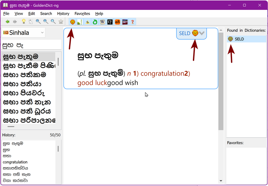 6. Restart GoldenDict-NG and the SELD should appear. Depending on your layout settings you will notice it in several different places.