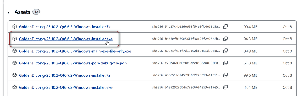 1. Download and install the latest version of GoldenDict-NG. Look for Windows-installer.exe and run.